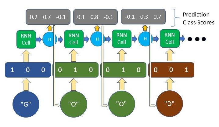 This form of encoding is basically giving each character in the text a unique vector. For example, if our text only contains the word “GOOD”, there are only 3 unique characters and thus our vocabulary size is only 3. We will allocate each unique character a unique vector, where all the items are zero except one at an index assigned to that character. This is how we represent each character to the model.