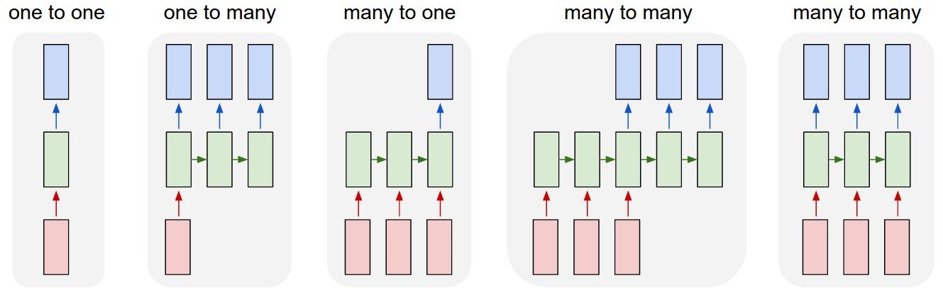 This is where RNNs are really flexible and can adapt to your needs. As seen in the image above, your input and output size can come in different forms, yet they can still be fed into and extracted from the RNN model.