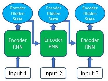 For our first step, we’ll be using an RNN or any of its variants (e.g. LSTM, GRU) to encode the input sequence. After passing the input sequence through the encoder RNN, a hidden state/output will be produced for each input passed in. Instead of using only the hidden state at the final time step, we’ll be carrying forward all the hidden states produced by the encoder to the next step.