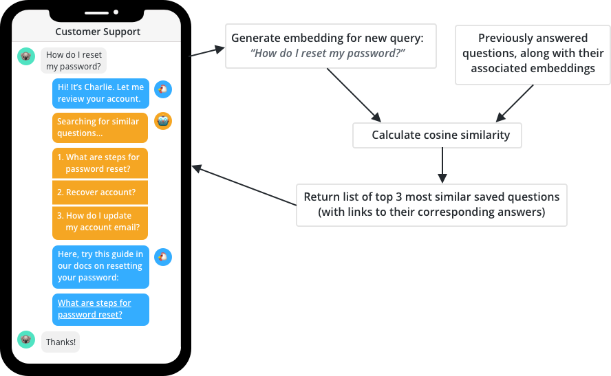 But there’s hope yet — neural networks can be trained to identify semantic similarity among text, which you can directly apply to your customer support workflow. Imagine this: