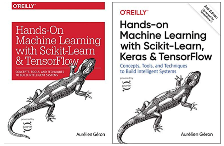 Front Cover of “Hands-on Machine Learning with Scikit-Learn, Keras, and TensorFlow: Concepts, Tools, and Techniques to Build Intelligent Systems - first and second edition”