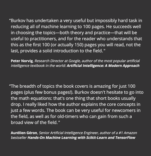- The Hundred-Page Machine Learning Book by Andriy Burkov