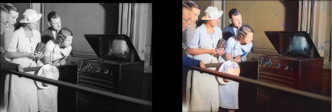 Image colorized by DeOldify: “Watching television for the first time in London, 1936”