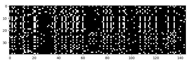 It’s a matrix of binary values, where each row is a different individual (40 total), and each column is is a mutation containing site (145 total) in a stretch of the genome.
