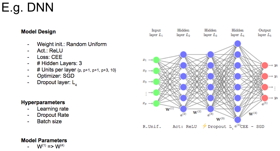 Okay, let’s try a real-world example. Take a look at the picture below for an example illustrating the different classifications of variables in a deep learning model.
