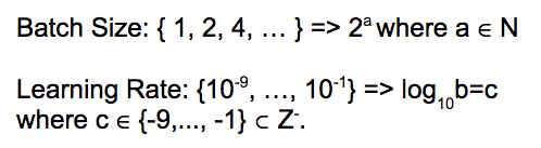 - For each dimension, define the range of possible values: e.g. batch_size = [4, 8, 16, 32, 64, 128, 256]