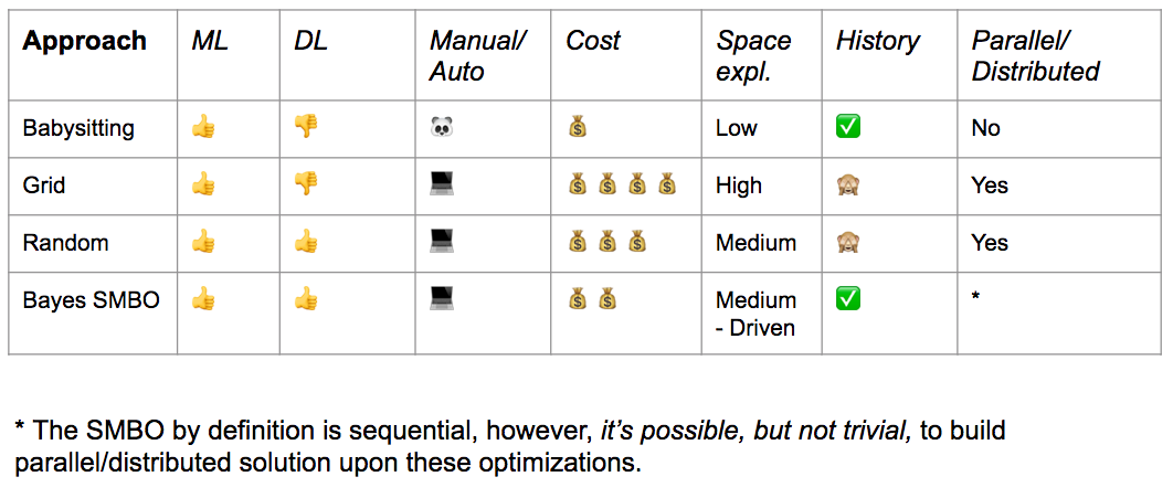 Just like I mentioned in the SMBO section, none of these strategies provide a mechanism to save our resources if a training is performing poorly or even worse diverging – we’ll have to wait until the end of the computation.