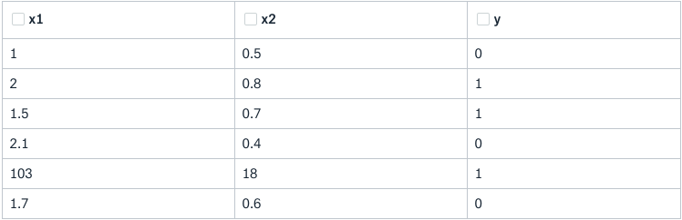 The dataset has two features: x1 and x2 and the predictor variable (or the label) is y. The dataset has got 6 observations. Upon taking a close look at the data points, the fifth data point appears to be the odd one out here. Really? Well, it depends on a few things -
