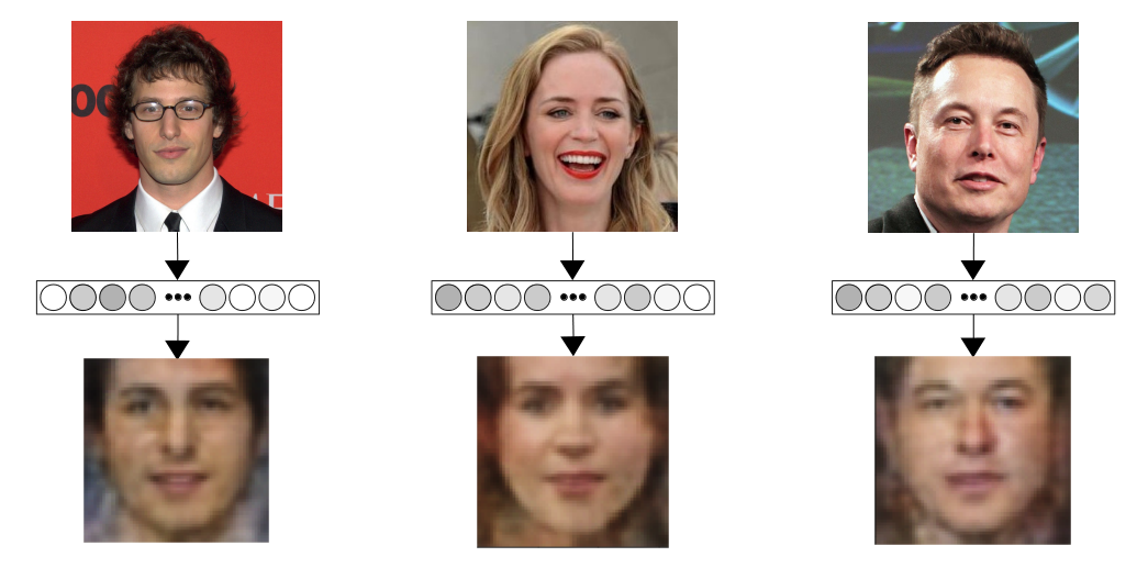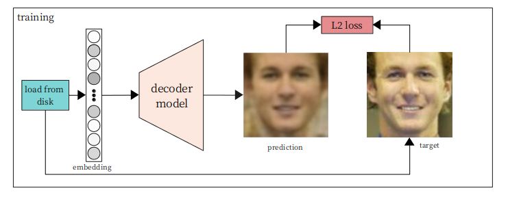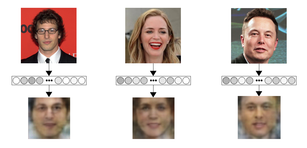 So, what we now have is a fairly straightforward supervised learning problem: given a set of face embedding vectors and their associated images, find a function that maps the embeddings to the images.