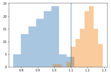 For this tutorial, I visualize both the distribution of the distances between the pairs of real and synthesized embeddings (blue), vs randomly pairing the synthesized embeddings with the real embeddings, making sure no synthesized embedding is paired up with its true real counterpart (orange). The main reason for doing this is really a sanity check , if the blue distribution overlaps heavily with the orange one, it basically means our synthesized images are as good as random. It does not appear to, which means our model is actually using the embedding information to generate an appropriate face properly.
