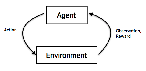 Time for a few quick definitions. In Reinforcement Learning, an agent perceives its environment through observations and rewards, and acts upon it through actions.