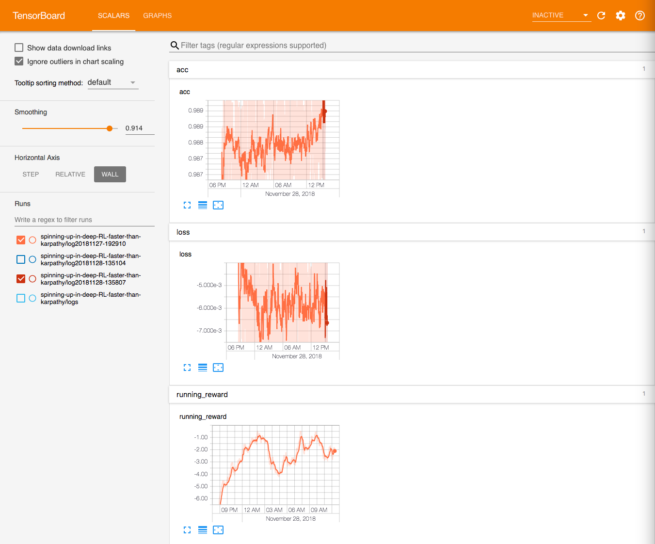 In short, using the spinning up repo with FloydHub completely transformed the experience of running experiments into something effortless.
