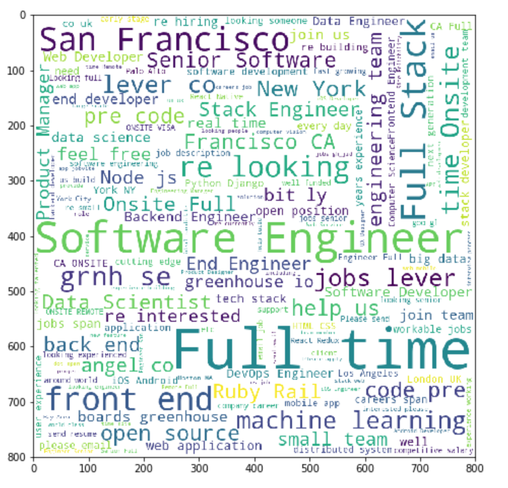 Finding out that people want “full-time full-stack software engineers in San Francisco” (big surprise) is just the beginning on what you can do with web scraping, or even this data.