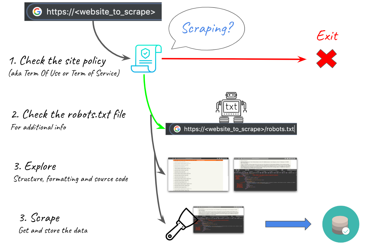 Site policy icon made by kiranshastry from www.flaticon.com, robots.txt icon source, scraper icon source, database icon source